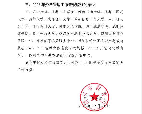 我校被省教育厅表扬为2025年资产管理工作表现较好的单位